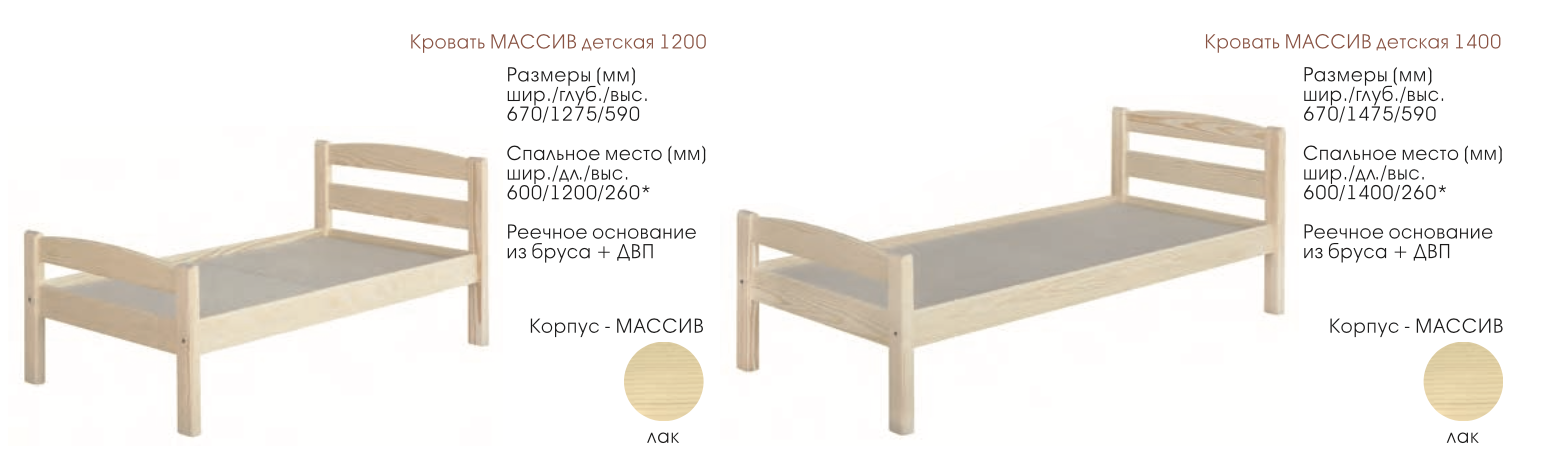 Детская Кровать Массив/Ш-670 х Г-1475/х В-590 мм