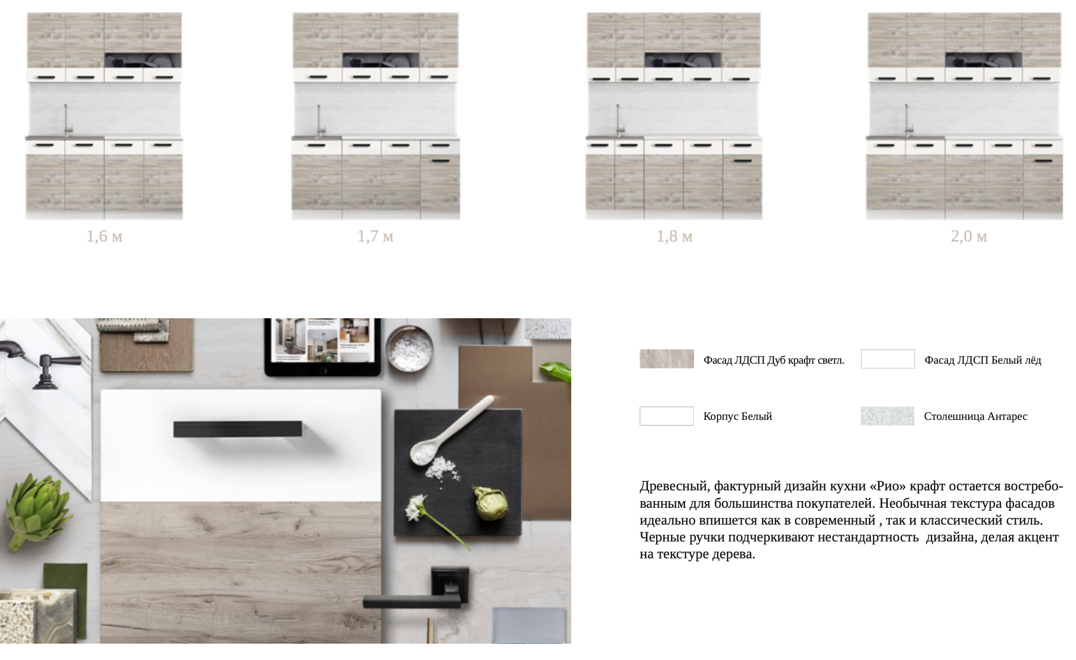 —Кухонный Гарнитур Риана Крафт Светлый + Белый 1600/1700/1800/2000 мм